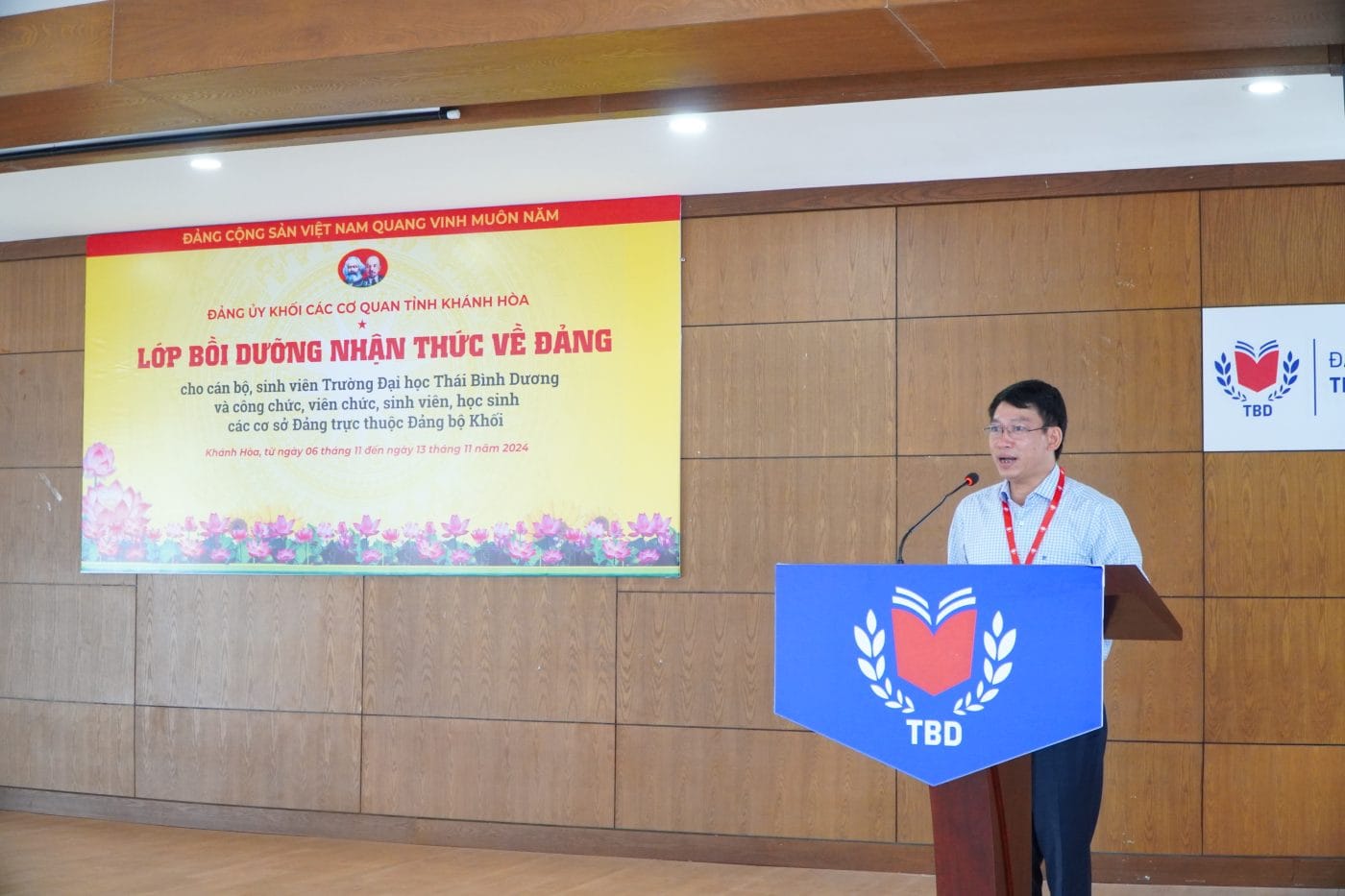 [Theo Báo Khánh Hòa] Sáng 6-11, tại Trường Đại học Thái Bình Dương, Ban Thường vụ Đảng ủy Khối các cơ quan tỉnh khai mạc lớp bồi dưỡng nhận thức về Đảng cho 102 quần chúng ưu tú là cán bộ, giảng viên, sinh viên thuộc Chi bộ Trường Đại học Thái Bình Dương và cán bộ, công chức, viên chức, sinh viên các cơ sở Đảng trực thuộc Đảng bộ Khối.