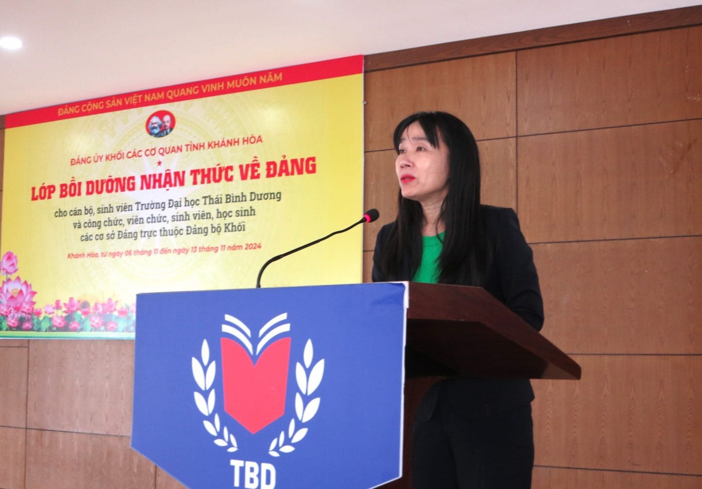 Phát biểu tại lễ khai mạc, bà Nguyễn Thị Bích Liên cho biết, việc tổ chức các lớp bồi dưỡng nhận thức về Đảng là nhiệm vụ quan trọng, thường xuyên nhằm tạo nguồn cho công tác phát triển Đảng, xây dựng lực lượng kế thừa đủ năng lực, trình độ, phẩm chất đạo đức để tiếp tục thực hiện nhiệm vụ chính trị của các cơ quan, đơn vị. Bà đề nghị, Trường Đại học Thái Bình Dương làm tốt công tác quản lý lớp học, tạo điều kiện về cơ sở vật chất, trang thiết bị cho các học viên; các học viên học tập nghiêm túc, thực hiện tốt nội quy của lớp. Sau quá trình học tập, học viên tích cực vận dụng kiến thức vào thực tiễn, không ngừng rèn luyện bản lĩnh chính trị, đạo đức, lối sống, phấn đấu để sớm được đứng vào hàng ngũ của Đảng.