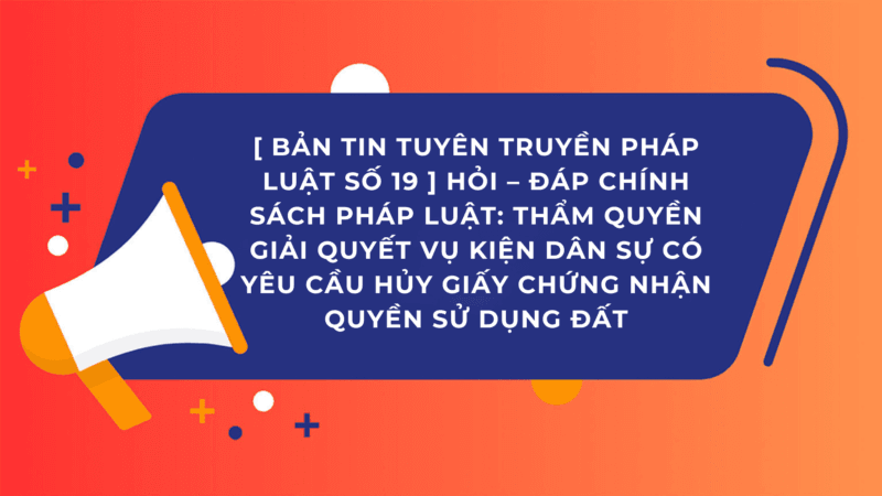 [ BẢN TIN TUYÊN TRUYỀN PHÁP LUẬT SỐ 19 ] HỎI – ĐÁP CHÍNH SÁCH PHÁP LUẬT: THẨM QUYỀN GIẢI QUYẾT VỤ KIỆN DÂN SỰ CÓ YÊU CẦU HỦY GIẤY CHỨNG NHẬN QUYỀN SỬ DỤNG ĐẤT
