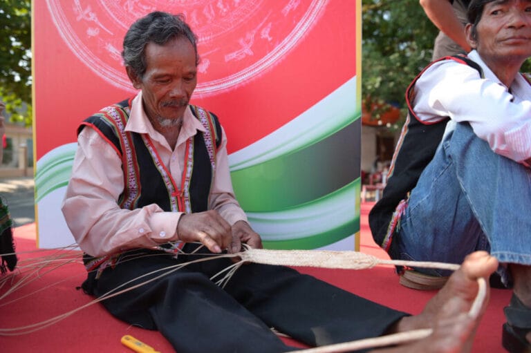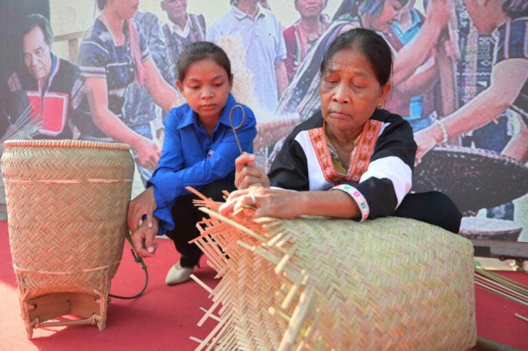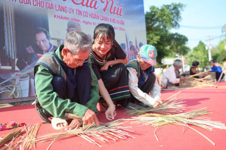Lễ hội có các hoạt động đặc sắc như tái hiện nghề đan lát truyền thống.
