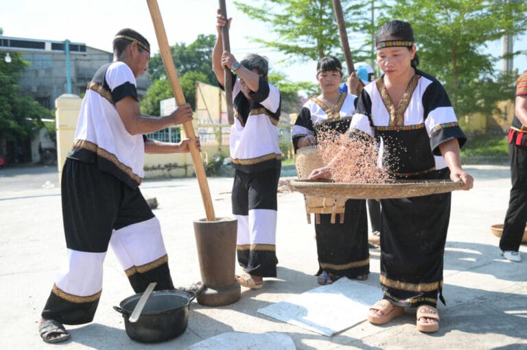 Bên cạnh đó, các đội thi đến từ các địa phương còn thi tài giã gạo.