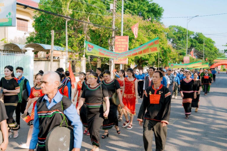Mở đầu lễ hội, các đoàn viên, thanh niên, người dân tham gia diễu hành tuyên truyền trên các tuyến đường chính của thị trấn Khánh Vĩnh.