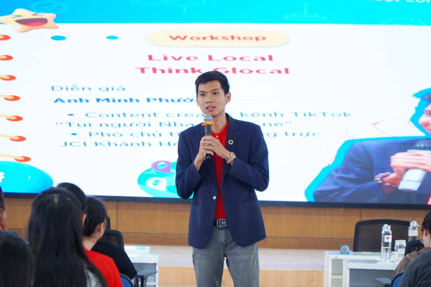 With an inspiring story and graceful presentation, Mr. Minh Phuoc – Vice President of JCI Khanh Hoa 2025 and content creator of the TikTok channel “Tui Người Nha Trang nè” – shared with students an interesting philosophy: Live local, Think glocal.