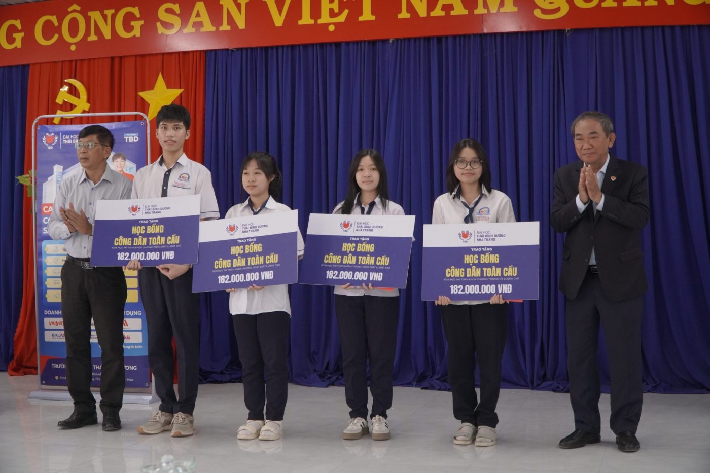 - 03 “Global Citizen Scholarships”: Nguyen Ngoc Bao Nguyen – Class 12A6; Tran Minh Khoi – Class 12C4; Mieu Khai Kien – Class 12A5