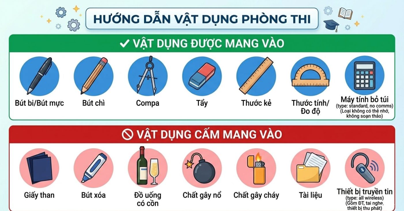 Bên cạnh đó, việc đến điểm thi sớm khoảng 20–30 phút cũng giúp bạn ổn định tâm lý, tránh căng thẳng không cần thiết.