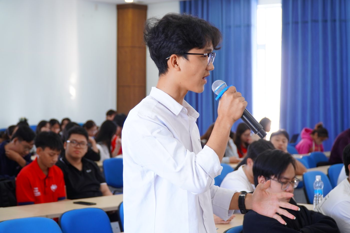 Sinh viên đặt câu hỏi giao lưu với diễn giả.