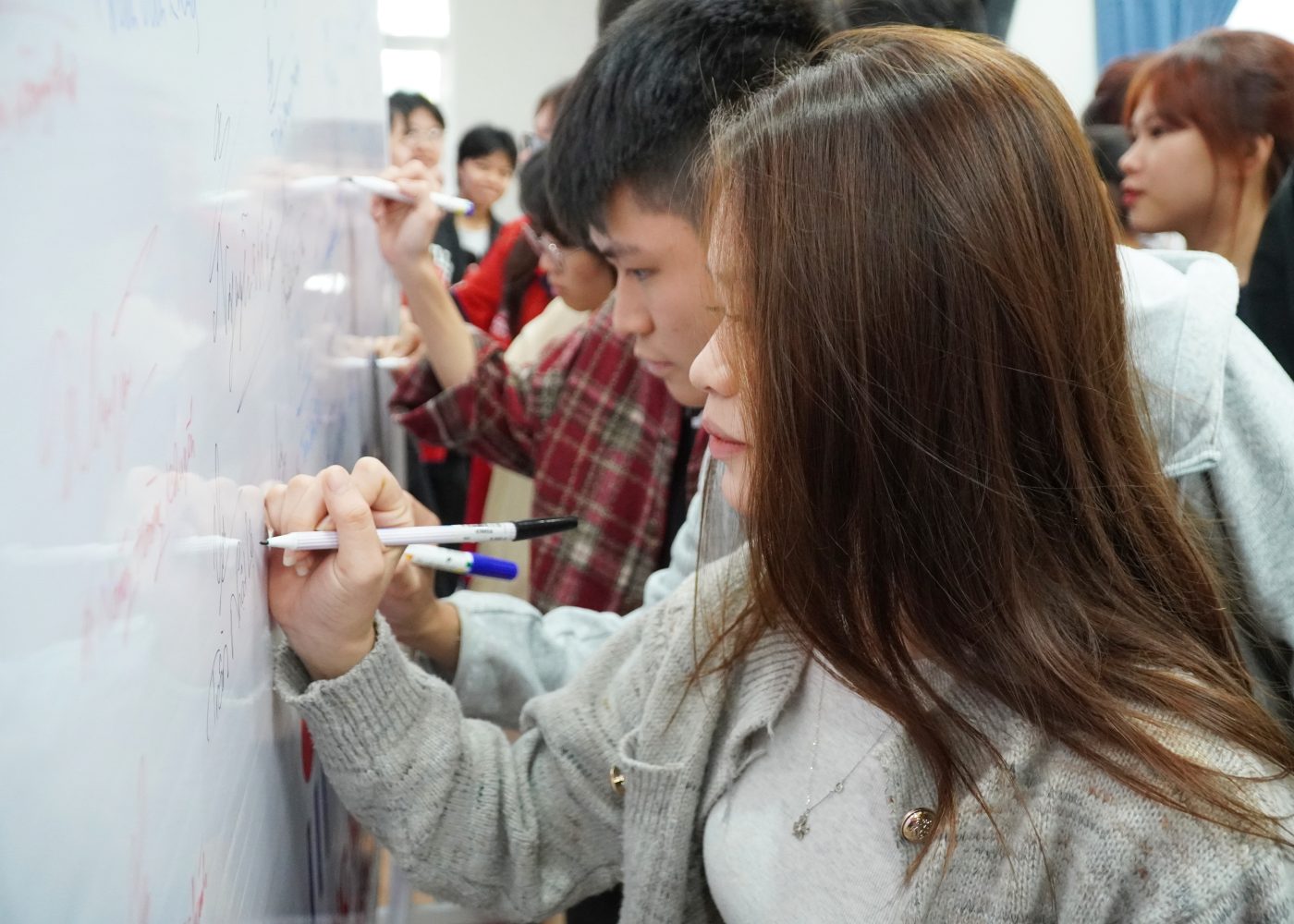 Sinh viên ký tên cam kết lên “Bức tường an toàn số”.