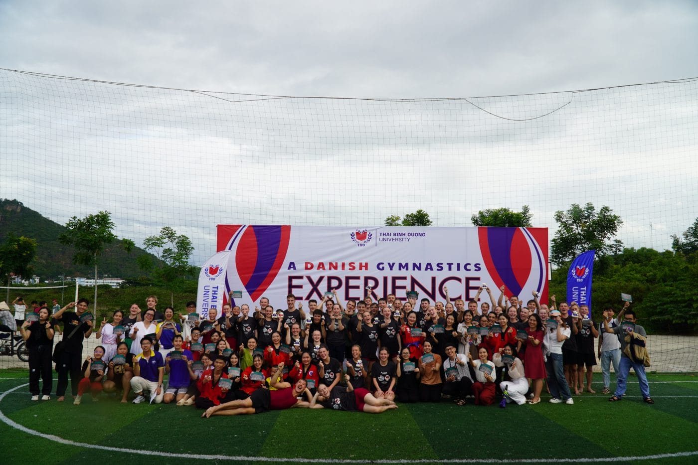 Sinh viên Trường đại học Thái Bình Dương trong hoạt động giao lưu cùng đoàn thể dục dụng cụ Đan Mạch.