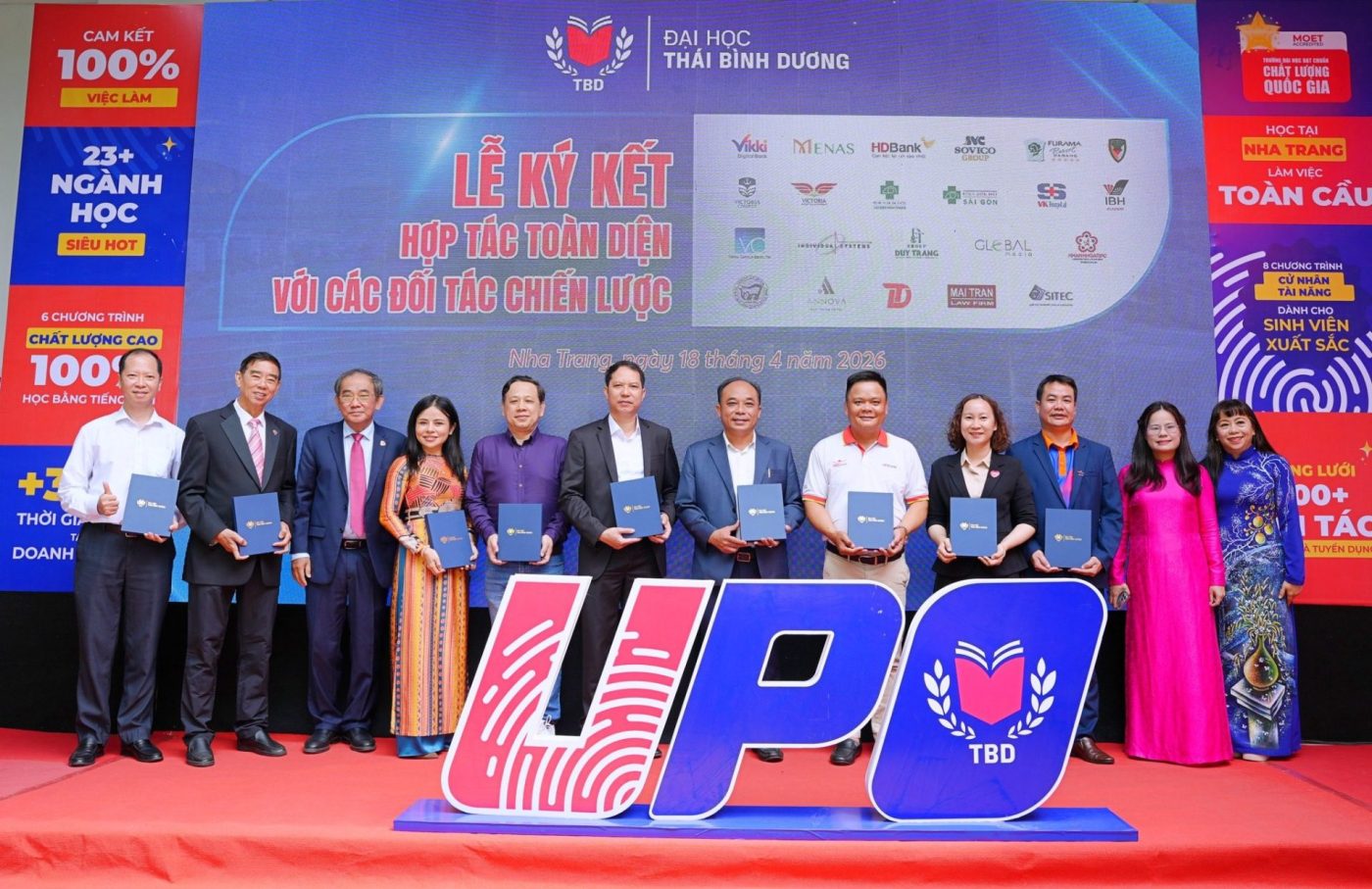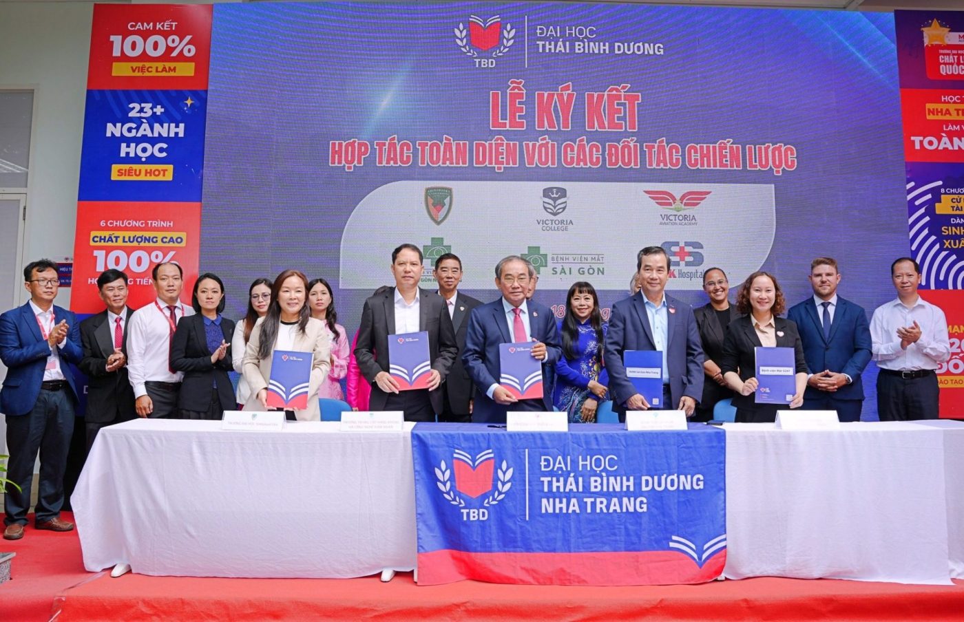 Các đối tác tham gia ký kết trải rộng trên nhiều nhóm lĩnh vực. Ở khối tài chính – doanh nghiệp có Ngân hàng số Vikki Bank, HDBank, Sovico Khánh Hòa, Tập đoàn Menas và Furama Resort. Khối doanh nghiệp – đào tạo gồm IBH, DT Group, Valley Campus Japan, Công ty IVS và Công ty Cổ phần Truyền thông và Giải trí Toàn cầu.